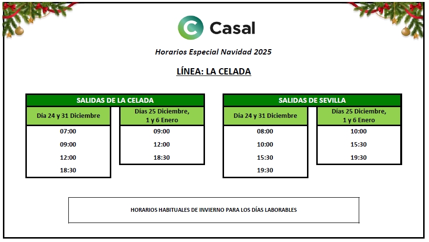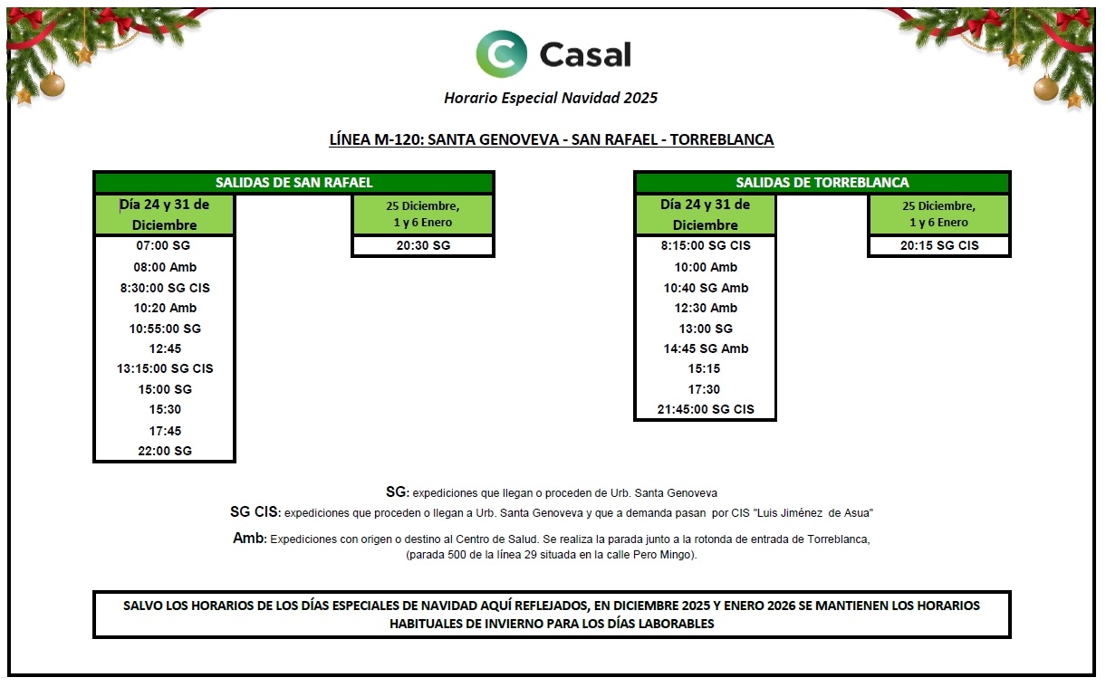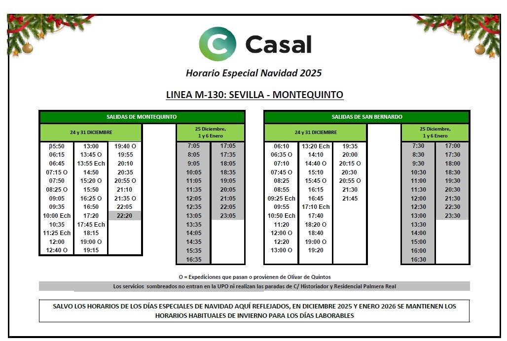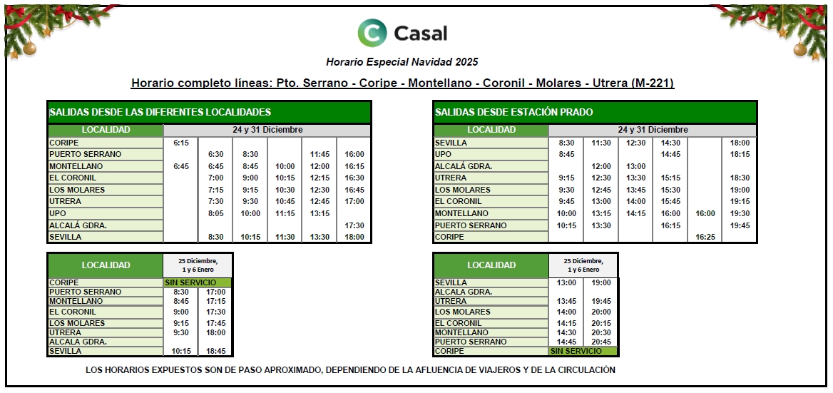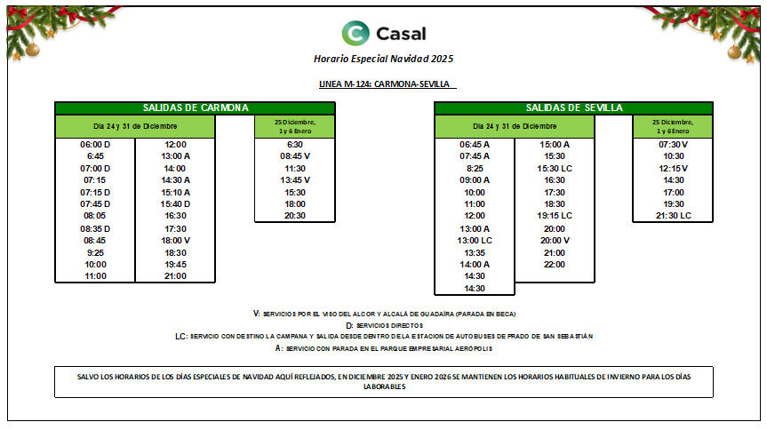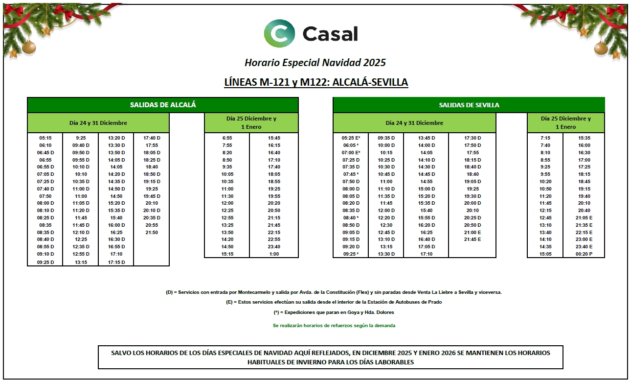 Los horarios de nuestras líneas para los días Especiales de la Navidad 2025-2026 son los siguientes: