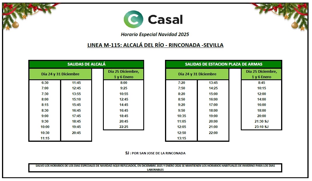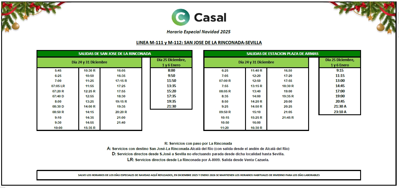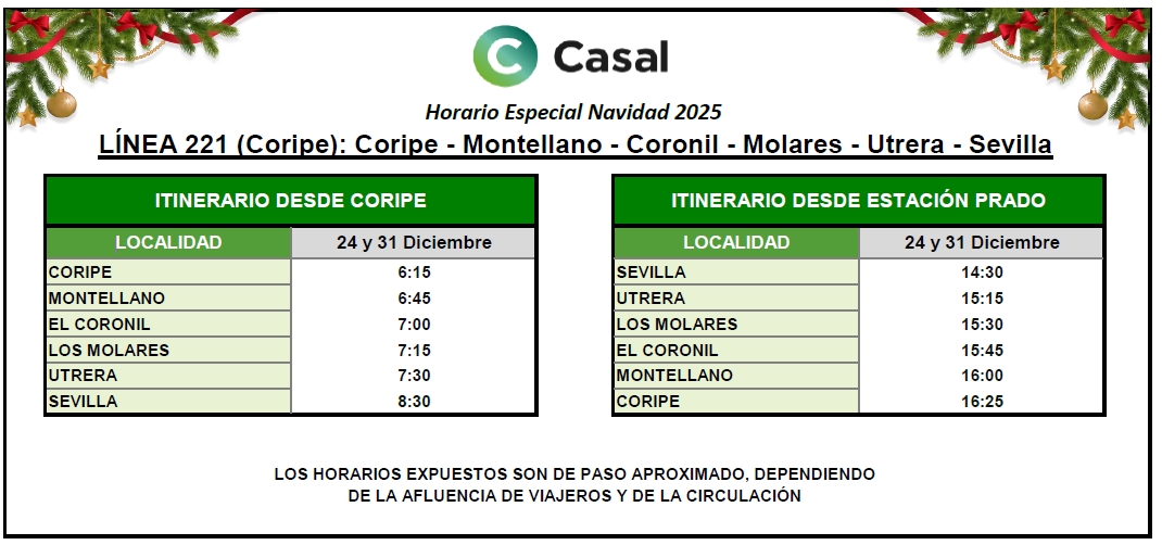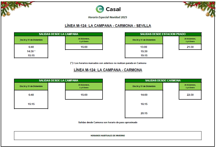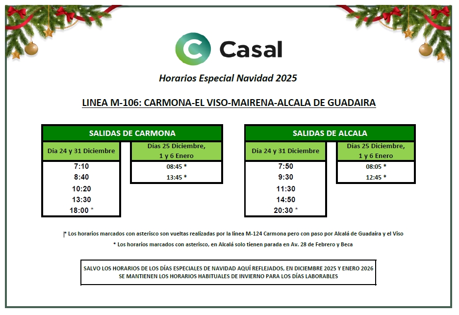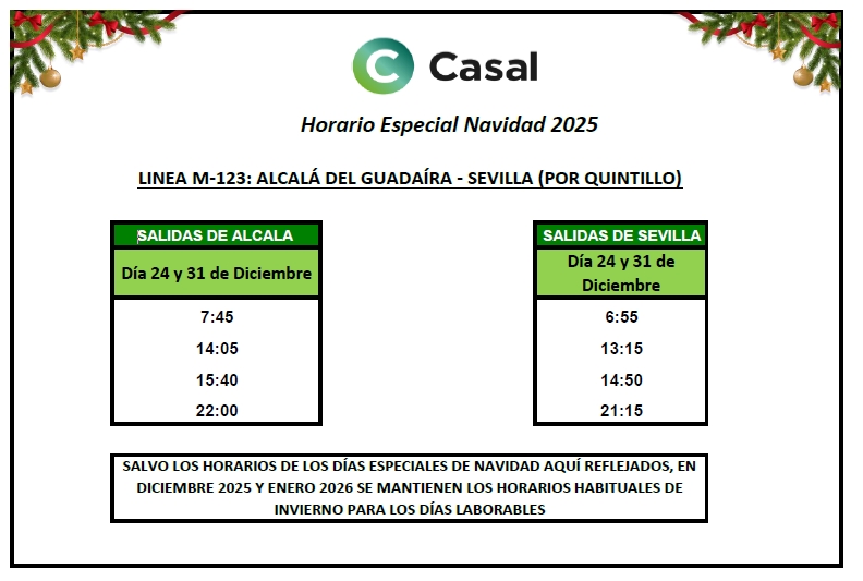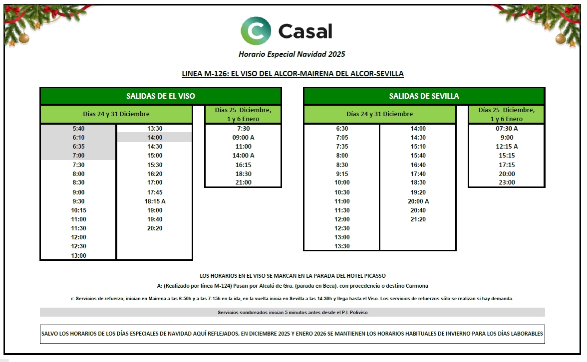 Los horarios de nuestras líneas para los días Especiales de la Navidad 2025-2026 son los siguientes: